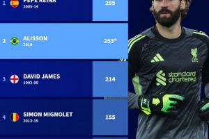 体育资讯3月15日讯 阿利松与利物浦正式完成续约,德转也盘点了利物浦队史门将球员在英超出场次数榜,具体如下: