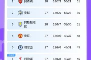 体育资讯02月28日讯 英超第28轮,维拉客场0-2不敌狼队,目前多赛一场领先身后的曼联3分,领先排名第6暂位欧联区的利物浦6分。最新积分榜如下: