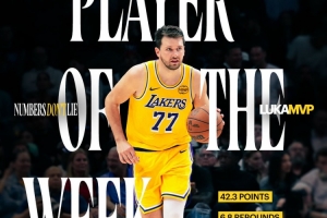 湖人官方发布东契奇周最佳海报:连续两周西部周最佳球员:卢卡·东契奇!
