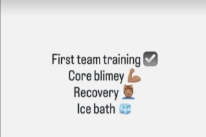 这位15岁小将写道:“一线队训练 ☑️核心力量训练 ??恢复性练习 ??♂️冰浴 ?。”