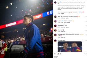 本场比赛佩德里首发表现不俗,赛后他也在个人社媒晒出本场照片,配文鼓励球队写道:“我们倾尽全力,距离目标仅一步之遥 ? 本赛季我们还有两个非常重要的冠军可以争取,我毫不怀疑凭借我们的努力以及球迷们的支持,我们将迎来许多精彩的夜晚。现在是时候恢复体力并保持高昂的斗志!”
